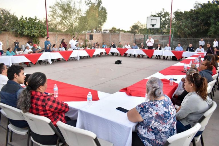 Junto a Luis Fuentes Aguilar, alcalde de Empalme, la funcionaria encabezó la mesa de trabajo con la Red Vecinal, integrada por ciudadanos representativos de la localidad, en la que explicó la estrategia de la Jornada Permanente por la Paz, con la cual se promueve la generación de entornos seguros.