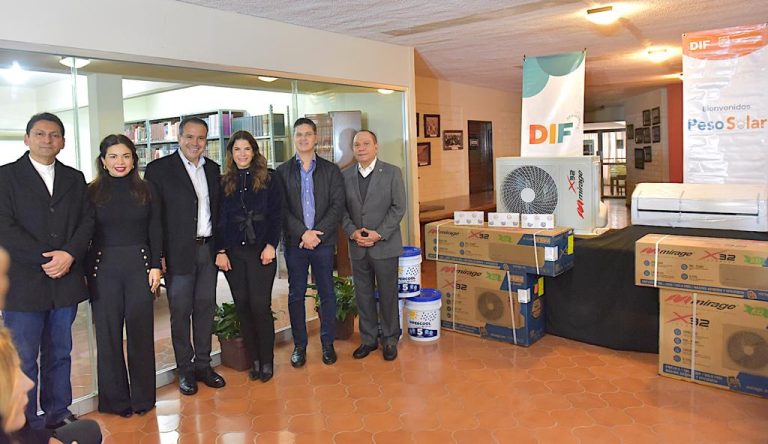 Junto con Isela Montes de Oca, directora general de DIF en la localidad, entregaron 3 equipos de refrigeración de última generación, 15 focos LED y materiales para impermeabilizar, recomendados a partir de un dictamen técnico de eficiencia energética que forma parte de la estrategia Peso Solar.