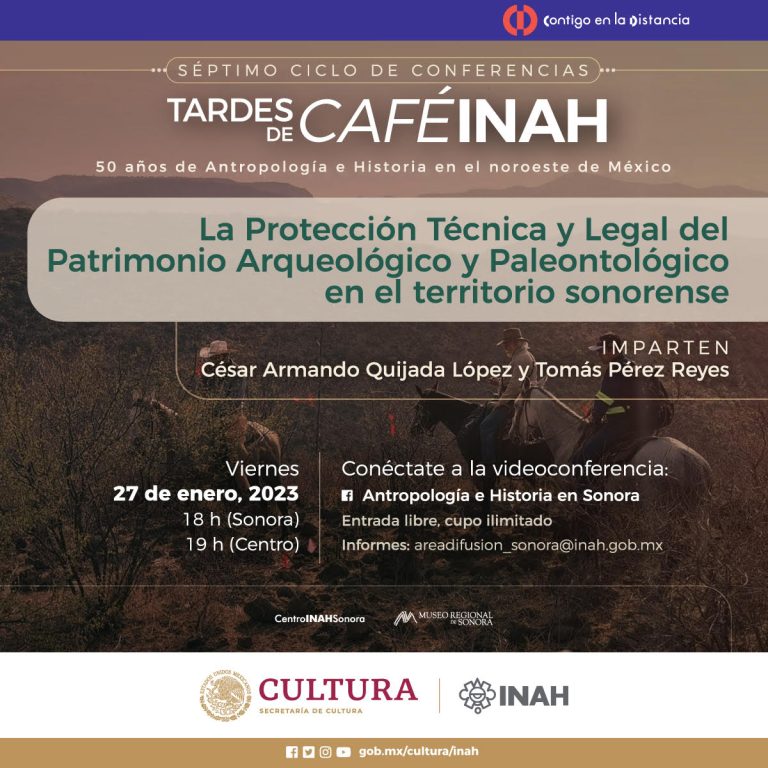 El Instituto Nacional de Antropología e Historia (INAH) en Sonora iniciará su séptimo ciclo anual “Tardes de CAFÉINAH”, con la conferencia “La Protección Técnica y Legal del Patrimonio Arqueológico y Paleontológico en el territorio sonorense”, a cargo de los arqueólogos César Quijada López y Tomás Pérez Reyes.