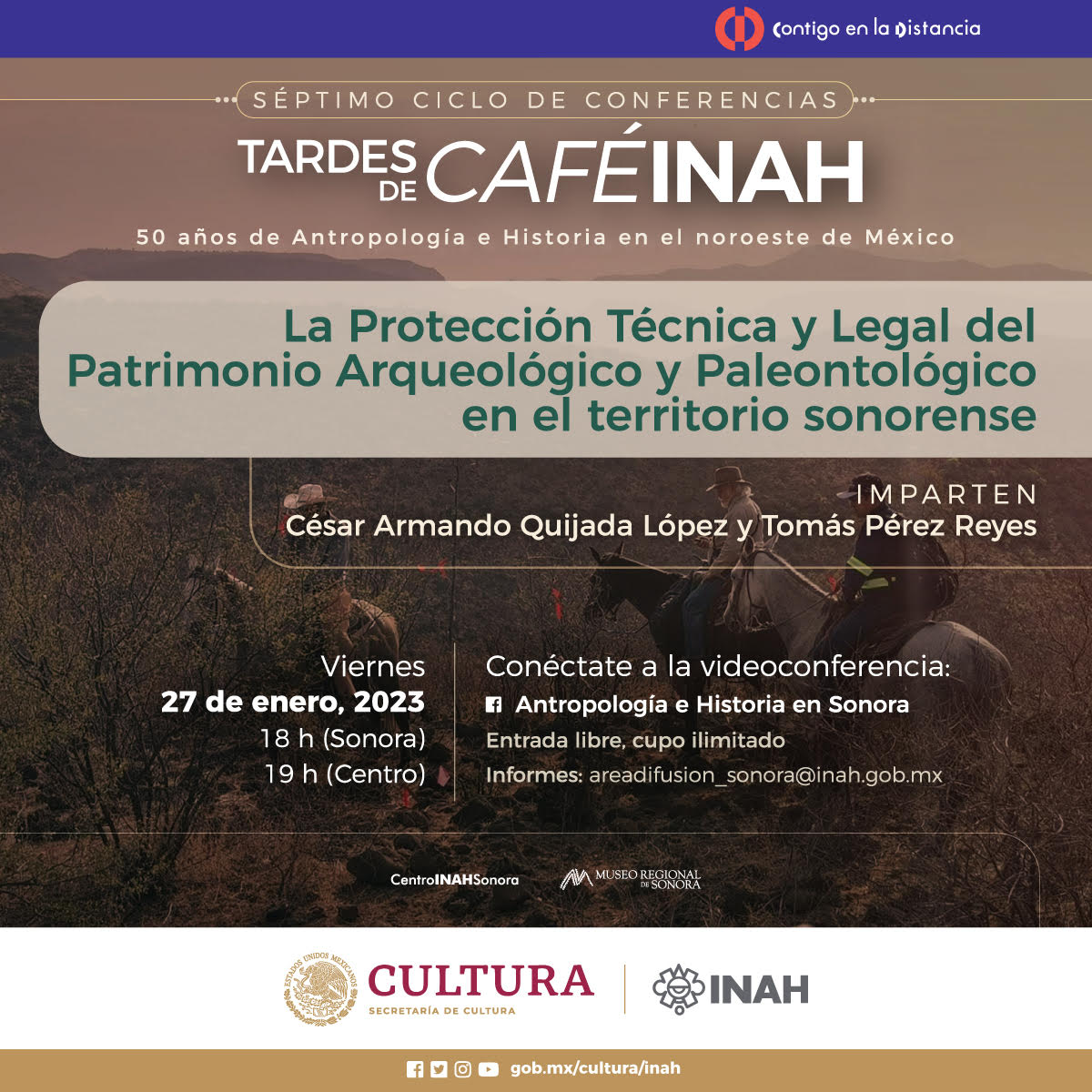 Continuando con la modalidad virtual, la cita es el próximo viernes, 27 de enero, a las 18:00 horas (tiempo local), en la página de Facebook de Antropología e Historia en Sonora.