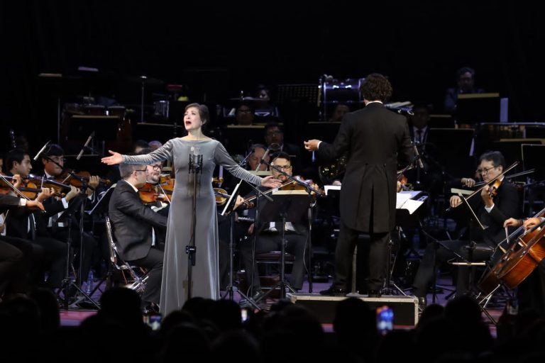 Tras esto, la soprano Lourdes Ambriz, la mezzosoprano Verónica Alexanderson y la Orquesta Filarmónica de Sonora, interpretaron un bello repertorio de arias clásicas y canciones mexicanas, bajo la dirección del maestro Héctor Acosta.