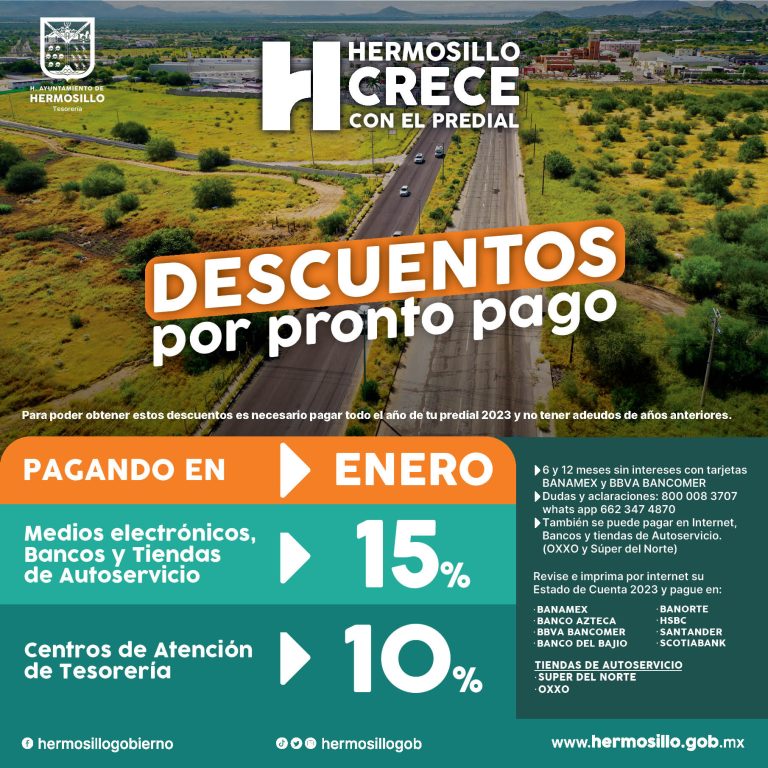 ¡Últimos días descuento de enero por pronto pago! #HermosilloCreceConTuPredial