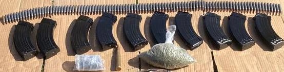 Al revisar la mochila con estampado camuflaje, el operativo coordinado encontró diez cargadores para arma de fuego, 119 cartuchos de diferentes calibres, entre estos .50, .223 y 7.62x39mm. En el mismo lugar había una bolsa que contenía hierba verde con características físicas al narcótico.