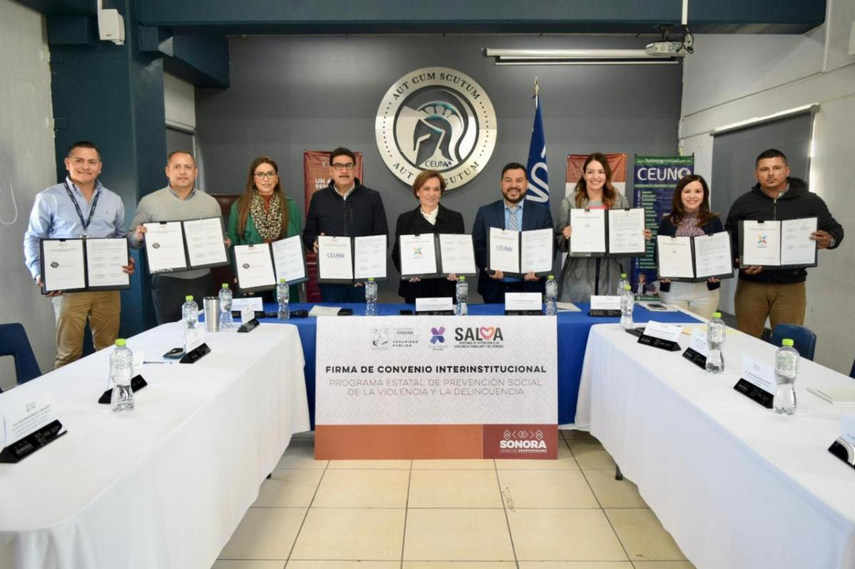 Posteriormentente, firmó convenio de colaboración con autoridades del Centro de Estudios Universitarios del Nuevo Occidente (Ceuno), Universidad Tecnológica de Nogales, Consejo Empresarial de Nogales y Consejo Directivo en Acción x Nogales, para colaborar con la estrategia de prevención social de la violencia y delincuencia en la localidad.