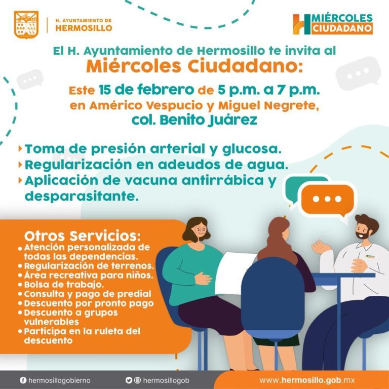 Residentes de la colonia Benito Juárez podrán aprovechar todos los servicios e información del Ayuntamiento en el Miércoles Ciudadano que se realizará este 15 de febrero.