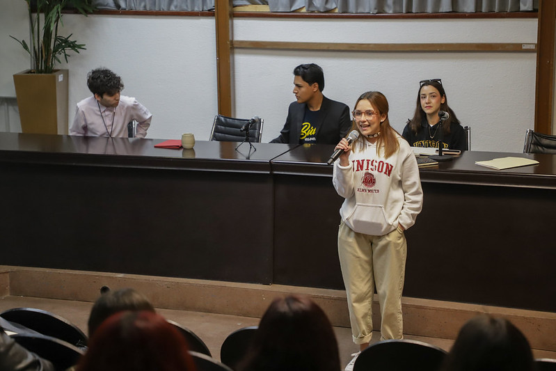 A este encuentro con estudiantes también asistieron las diputadas Natalia Rivera Grijalva, Rosa Elena Trujillo Llanes y Sagrario Montaño Palomares.