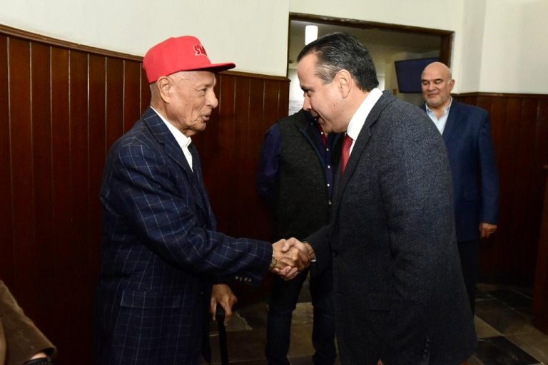 El Presidente Municipal, Antonio Astiazarán aprovechó la presencia del reconocido formador deportista para felicitarlo por el nombramiento del Gimnasio Nacameri donde el gobierno municipal recientemente invirtió en mejoraras a sus instalaciones.