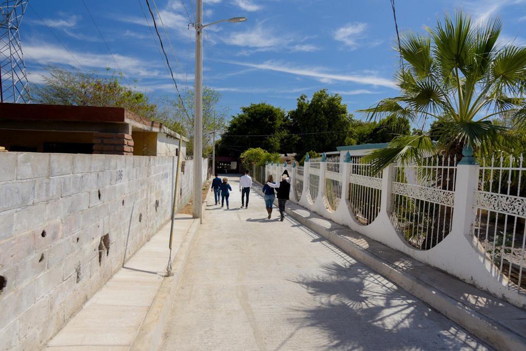 Luego se trasladó a la calle Rómulo Córdova, de esta misma comunidad, para entregarla ya pavimentada e iluminada en sus inmediaciones con 10 lámparas de 160 watts, así como constatar el revestimiento con concreto hidráulico del callejón de acceso a la escuela telesecundaria 186, con una inversión total superior al millón y medio de pesos.