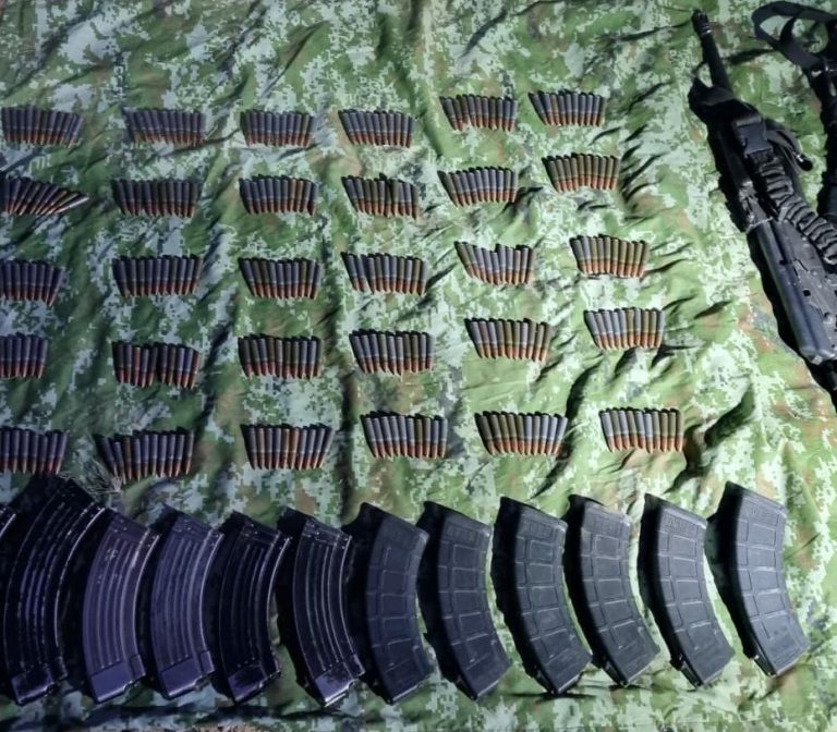 Dentro del vehículo encontraron cuatro armas tipo fusil, calibre 7.62x39mm, conocidas como AK-47, además de cargadores y 300 cartuchos.