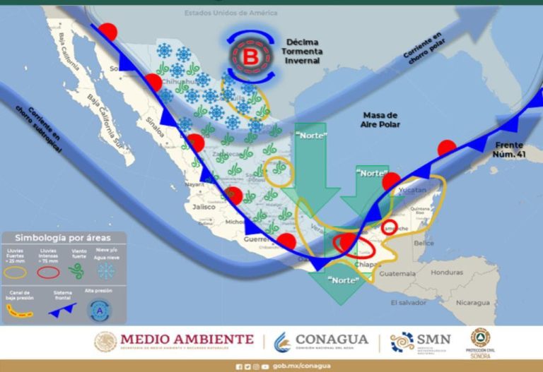 En lo referente al sur de Sonora, para este fin de semana se esperan lluvias de ligeras en Cajeme, Navojoa y Huatabampo, con mínimas de nueve centígrados, a fuertes, en Quiriego, Rosario y Álamos, con mínimas de seis centígrados.