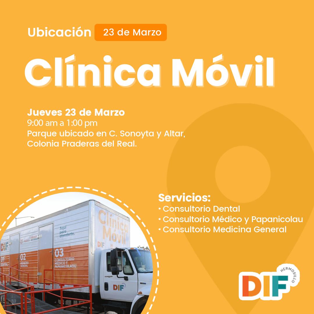 La Clínica Móvil de DIF Hermosillo acercará sus servicios gratuitos este jueves 23 de marzo a la colonia Praderas del Real, al norte de la ciudad.