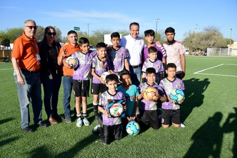 A partir de las 5:00 de la tarde, Toño Astiazarán constó la colocación del nuevo pasto sintético en el campo de futbol, ubicado en las calles Ocotlán y Lagos de Moreno, donde niñas y niños se entrenan diariamente a través del programa CRECES en Deporte.