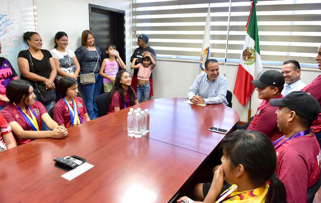 En Palacio Municipal conoció a las integrantes de la Selección Hermosillo y la preparación que las ha colocado orgullosamente como campeonas de fútbol en la categoría 2011-2012 en dos ocasiones.