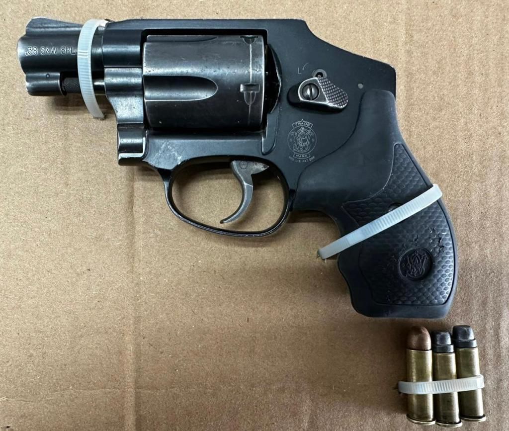 El conductor, identificado como Jorge “N”, tenía en su ropa un arma de fuego, tipo revólver, calibre .38, con tres cartuchos, además una bolsa con nueve envoltorios de hierba verde con características similares al narcótico.