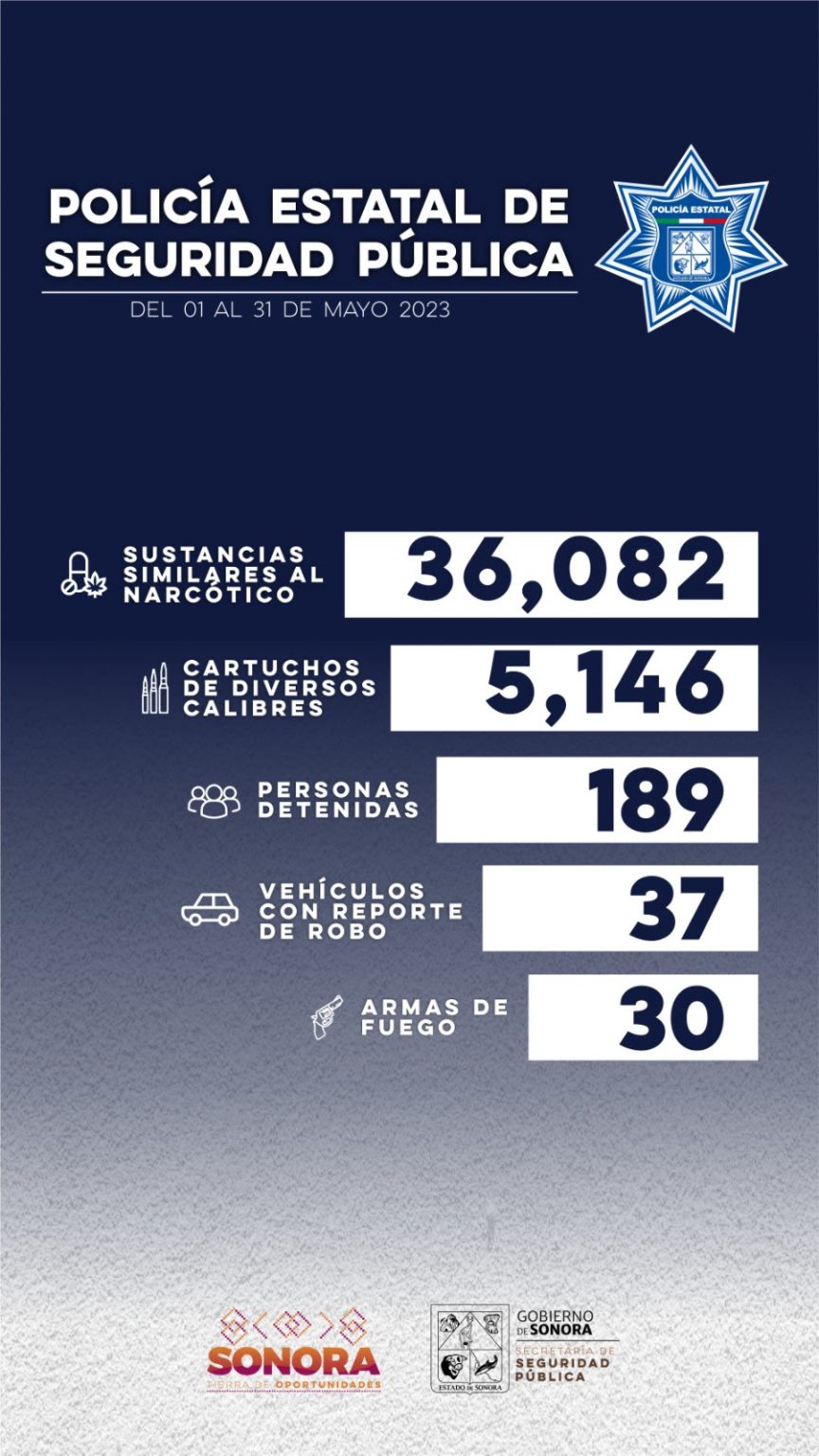 Durante el mismo periodo, aseguraron a 189 personas en flagrancia y recuperaron 37 vehículos que resultaron con reporte de robo en diferentes estados, incluyendo lugares del extranjero.