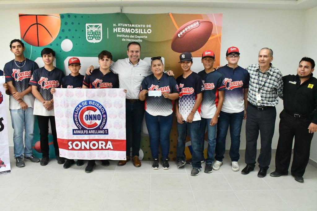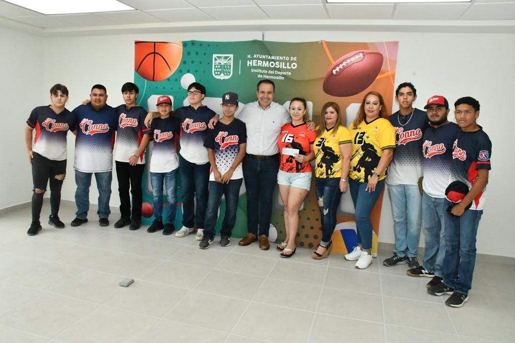 En las nuevas instalaciones del IDH, en la Unidad Nacameri, se entregó el apoyo al equipo de béisbol categoría 15-16 de la Liga Conno; al equipo de volibol Babys y a Naydelin García Herrera, del Nacional Futbol sub 18, para participar en competencias en Saltillo, Aguascalientes y Puebla. En esta ocasión se aprobaron 11 mil, 12 mil y 6 mil 620.56 pesos con cargo al Fondo.
