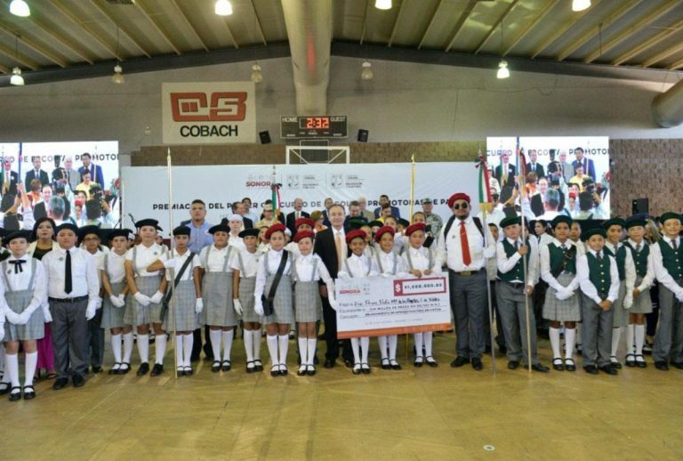 En el marco de la celebración del Primer Concurso de Escoltas Promotoras de Paz 2023, el mandatario sonorense explicó que el objetivo de este certamen es el aprecio y promoción de los símbolos patrios y el fortalecimiento de la cultura cívica.