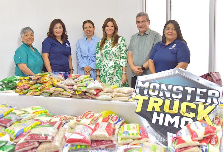 Entrega Patty Ruibal primeras 4.5 toneladas de alimento recolectadas por evento Monster Truck