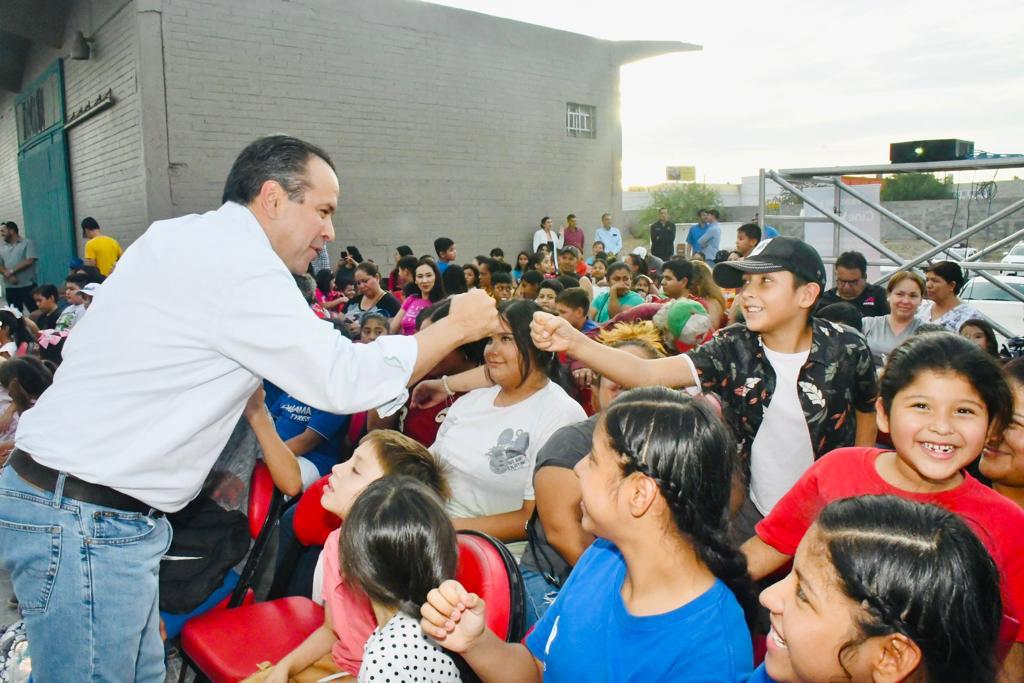 El Presidente Municipal concluyó la visita con el saludo a familias de la colonias San Luis, Café Combate y Amapolas, quienes disfrutaron la función “La increíble historia del niño de piedra” que Cinemex ofreció a más de 120 asistentes.