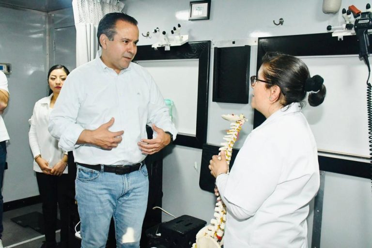 Junto a Luis Becerra Hurtado, director de Salud Municipal de DIF Hermosillo y Daniel García Escalante, director de Participación Ciudadana, el Presidente Municipal hizo un recorrido guiado por Ricardo Reyes, gerente Médico de Dr. Vagón, El Tren de la Salud en las instalaciones donde se brindan servicios de quiropráctica y rehabilitación física, mastografía y farmacia.