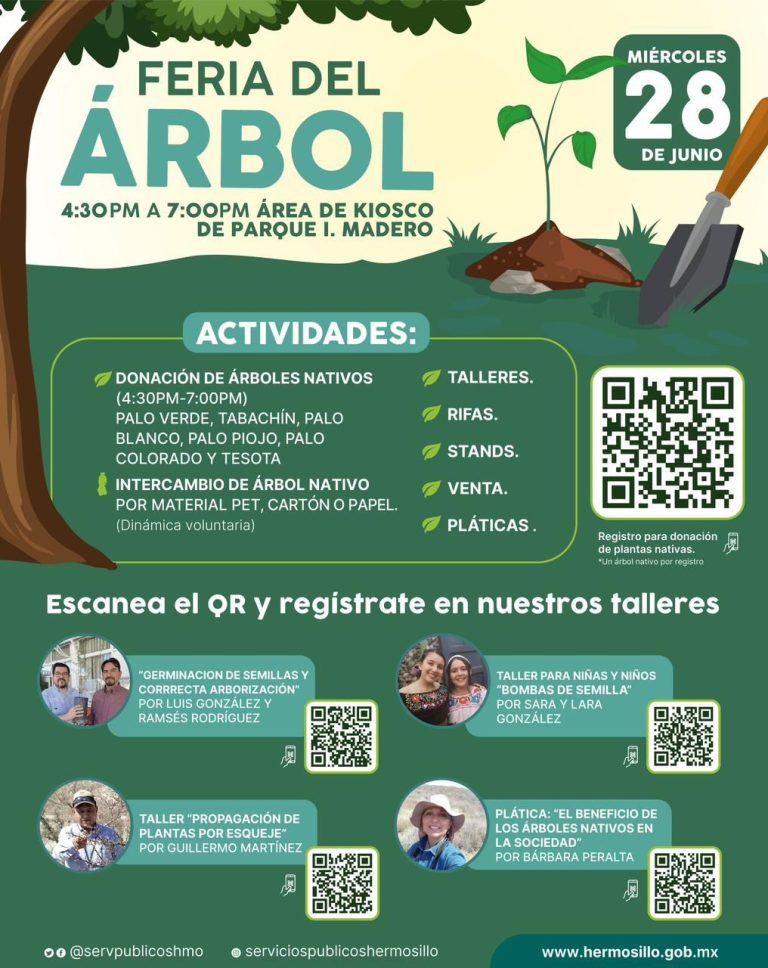 Además de la entrega de árboles habrá pláticas y talleres gratuitos sobre técnicas para la reproducción de especies vegetales nativas de la región, así como actividades para niñas y niños, detalló.