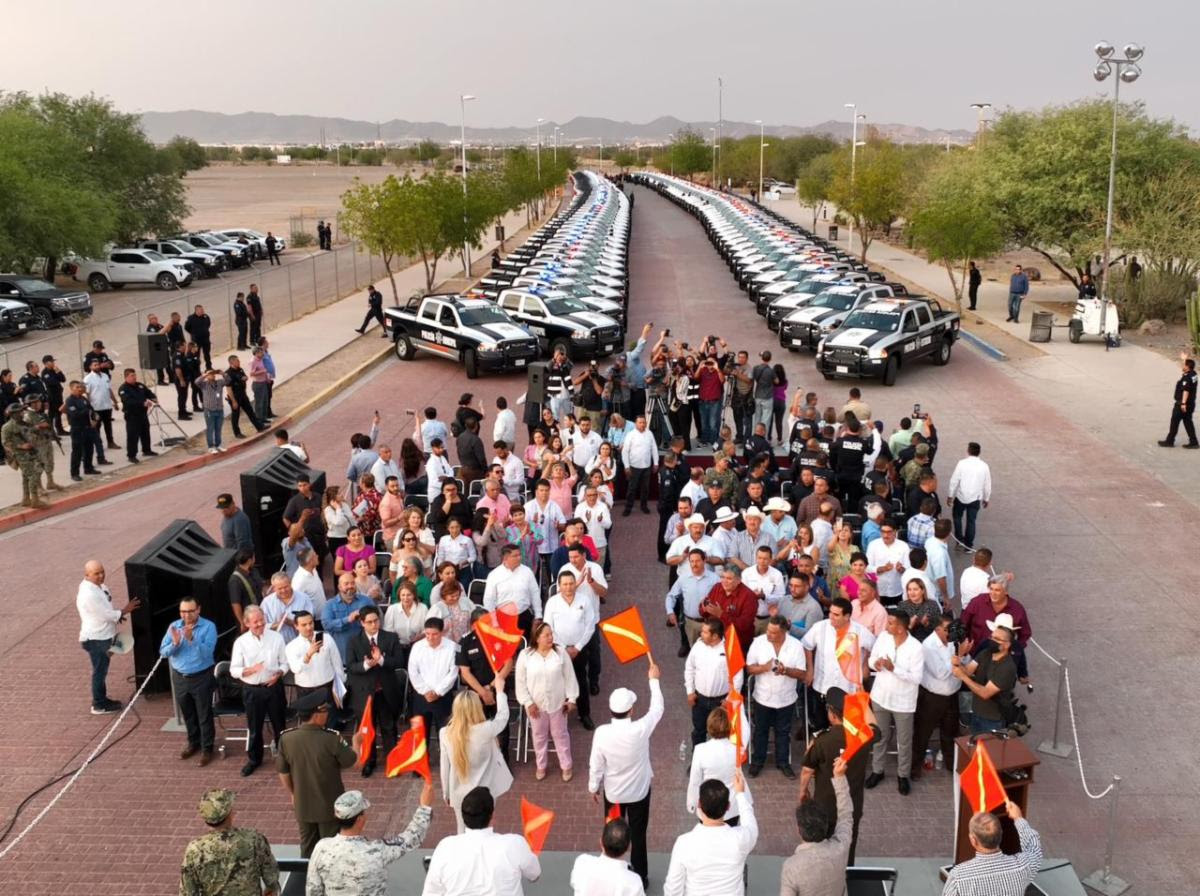El gobernador Alfonso Durazo Montaño encabezó la entrega de 131 patrullas destinadas a fortalecer la labor de la Policía Estatal de Seguridad Pública (PESP) y 32 municipios, con una inversión de 160 millones 530 mil 544 pesos.