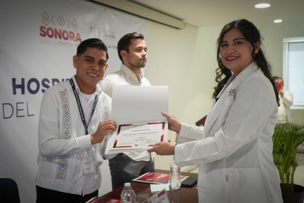 En ceremonia realizada en el Hospital General del Estado de Sonora, se entregaron constancia a 40 médicos que concluyeron su internado, teniendo, de junio de 2022 a junio de 2023, 109 médicos internos de pregrado de las distintas unidades hospitalarias de los Servicios de Salud de Sonora.