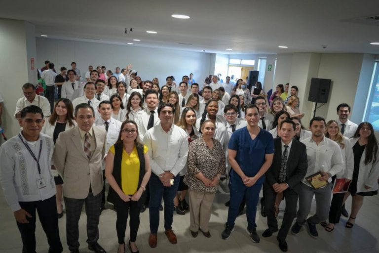 “Estudiar medicina fue una decisión que tuvieron que tomar tal vez en introspección para poder definir si era proyecto de vida que querían vivir, donde tuvieron que reflexionar si realmente tenían lo que requiere esta carrera: mucho valor, mucha pasión, mucha vocación, mucho sentimiento de responsabilidad, pero también mucha humanidad y amor al prójimo, felicidades y éxito en esta nueva etapa que están por seguir, donde estarán más cerca de las comunidades y de la gente”, recalcó.