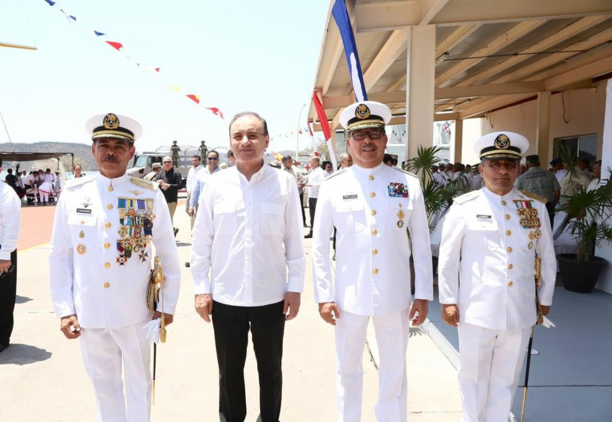 El gobernador Durazo dio la bienvenida al nuevo comandante de zona y recordó el importante servicio que esta fuerza ha brindado a Guaymas, esto al hacerse cargo de los proyectos de modernización del puerto, los cuales también se han reflejado en mejoras a la infraestructura civil de la ciudad.