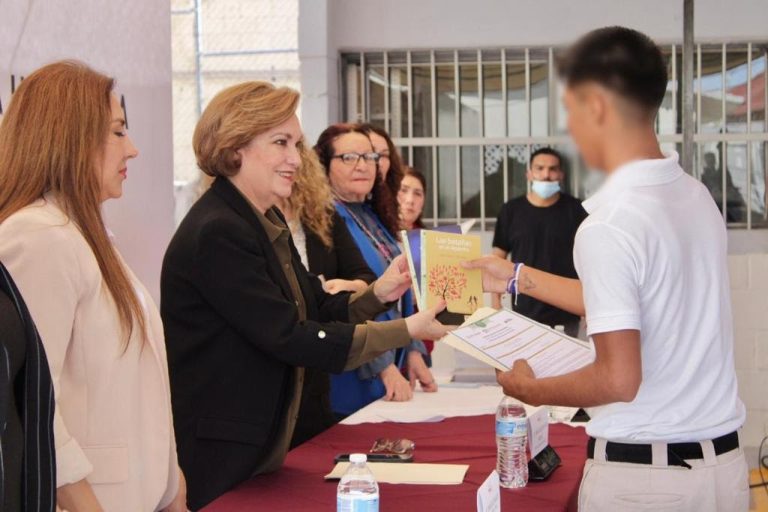 Como parte de las acciones para la reinserción educativa en Itama, María Dolores del Río Sánchez, secretaria de Seguridad Pública, junto a Mary Carrazco Valenzuela, directora general del ISEA, entregaron siete certificados de primaria, 14 de secundaria y cuatro de bachillerato.