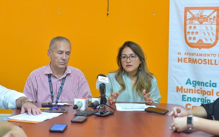 La directora de la AMECC, Carla Neudert Córdova y el director del Instituto del Deporte de Hermosillo (IDH), Armando Labrada García informaron sobre el proceso que actualmente lleva el Proyecto de Eficiencia y Sustentabilidad Energética en Municipios y Hospitales (PRESEMH), en conjunto con el Gobierno Municipal para la iluminación de campos deportivos.