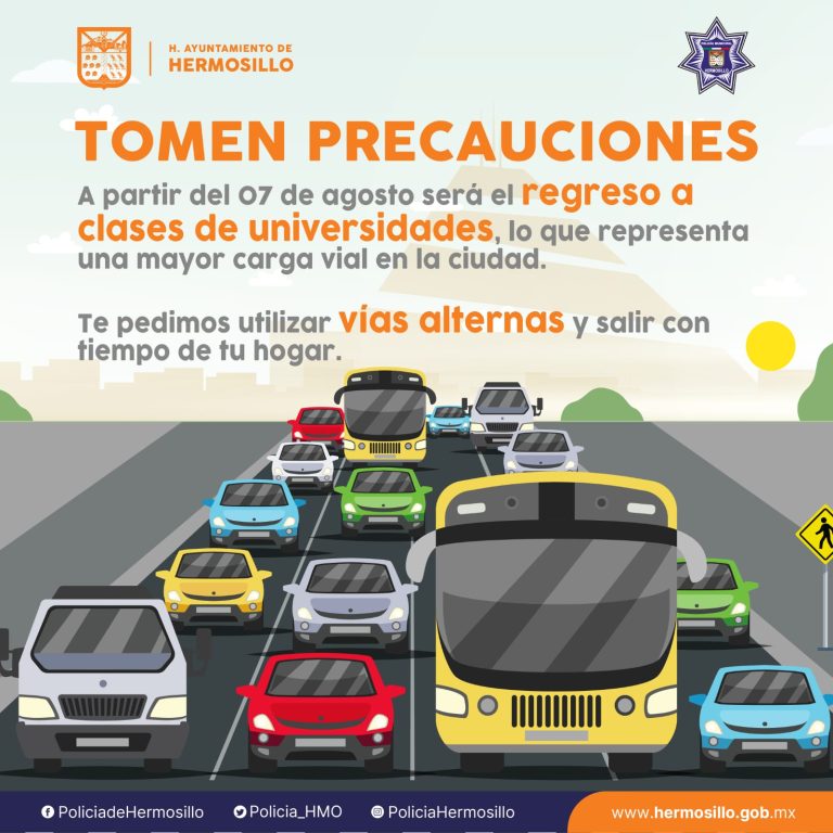 Hermosillo, Sonora a 06 de agosto del 2023.- El Departamento de Tránsito Municipal realizará operativos para inhibir accidentes viales ante el regreso a clases de universidades y servidores públicos de los tres niveles de gobierno.