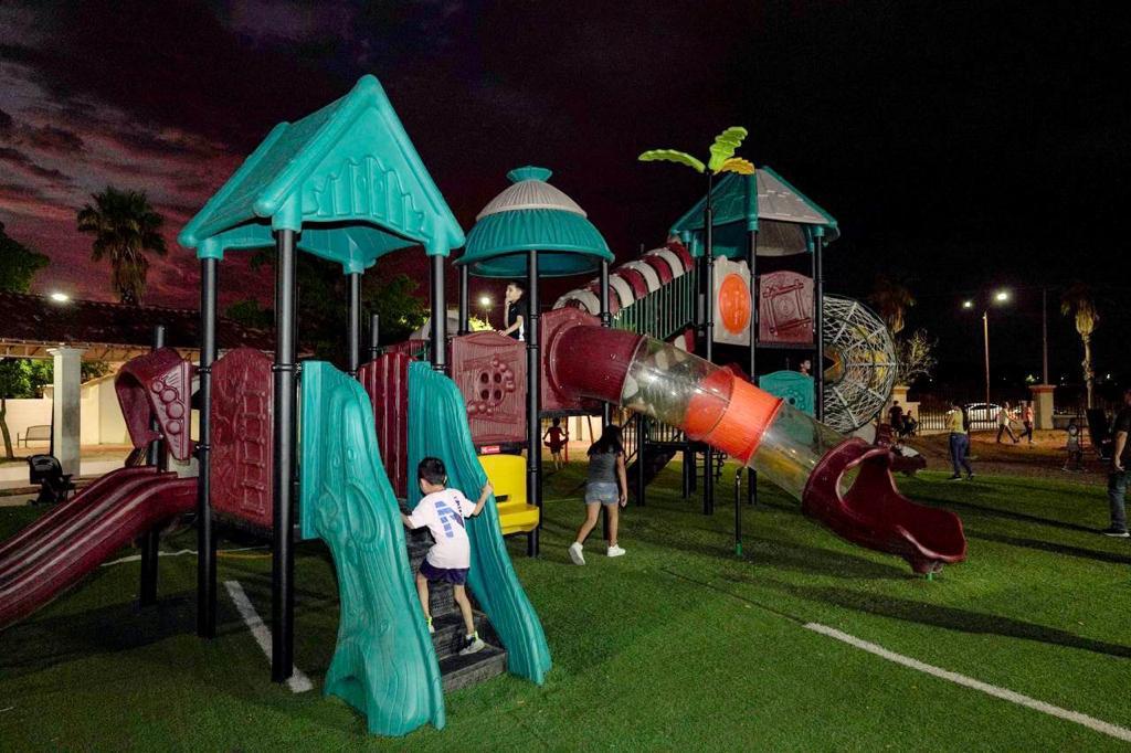 En el recorrido estuvieron presentes integrantes del Comité CRECES de Puerta Real, quienes dieron muestra del aprovechamiento que las familias dan diariamente a estos espacios donde se practican actividades físicas, deportivas y de entretenimiento para niñas y niños.