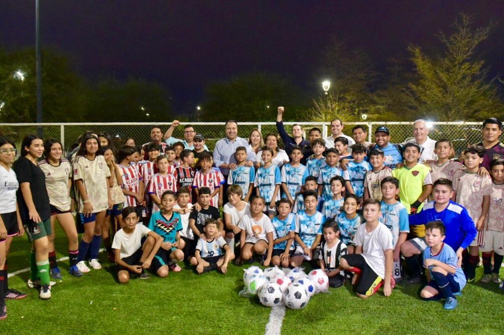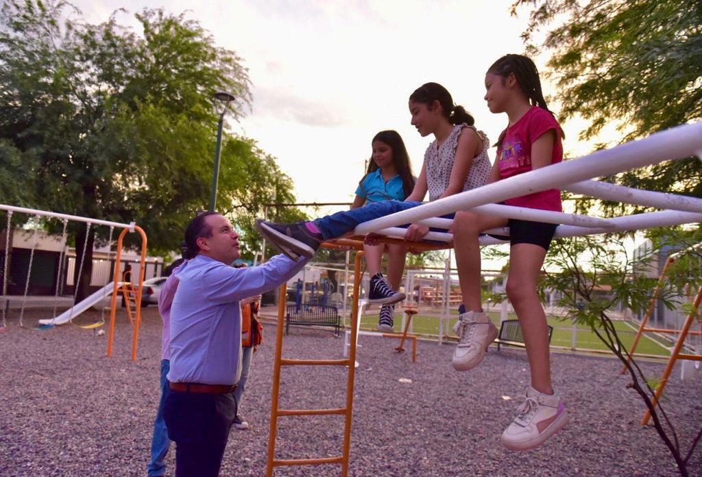 El Presidente Municipal convivió con familias de la colonia Sahuaro durante la entrega del parque ubicado en Luis Orcí y Lázaro Mercado donde se instaló pasto artificial en campo de futbol, cerco protector, reflectores en área de domo, rehabilitación de juegos infantiles, sistema de riego por goteo y pintura en cancha de basquetbol, por mencionar parte de las mejoras.