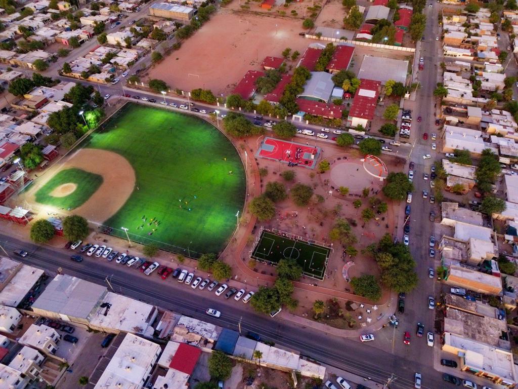 * Parque de Luis Orcí y Lázaro Mercado, colonia Sahuaro: 934 mil 987 pesos de inversión donde se instaló pasto artificial en campo de futbol, remplazo de malla ciclónica en cerco protector de canchas de futbol y basquetbol, rehabilitación y pintura en cancha de basquetbol, instalación de reflectores en área de domo, rehabilitación de juegos infantiles, al área de auditorio, instalación de mobiliario deportivo y sistema de riego por goteo
