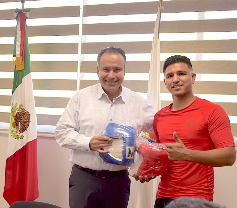 Estuvo en la entrega su entrenador Hassam Valenzuela, quien agradeció el apoyo y el cumplimiento de la palabra empeñada por Antonio Astiazarán cuando fue candidato a la Presidencia Municipal.