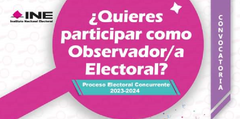 El Instituto Nacional Electoral (INE) en Sonora, hace una atenta invitación a la ciudadanía interesada en conocer los trabajos y participar como Observadora u Observador Electoral para el Proceso Electoral Concurrente 2023-2024.
