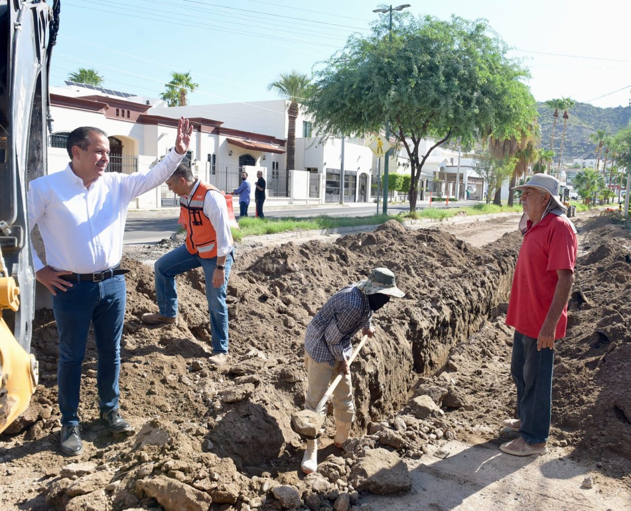 Toño Astiazarán recibió en el lugar detalles de la obra y de las estrategias constructivas consideradas para mejorar la conducción de avenidas pluviales en esta rúa, que es ruta de entrada y salida a varios desarrollos habitacionales del sector.