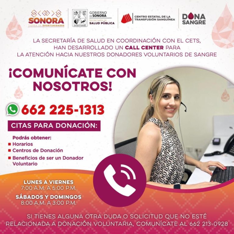 Hermosillo, Sonora; 18 de septiembre de 2023.- El Centro Estatal de la Transfusión Sanguínea (CETS) de la Secretaría de Salud (SSA) ha logrado captar, este año, a mil 530 donadores de sangre, con más de mil 740 pláticas de donación voluntaria. En lo que va de este año, la SSA, a través del personal del CETS ha realizado mil 740 pláticas de donación voluntaria de sangre, se han sensibilizado a 620 mil 899 sonorenses sobre el tema, y se han realizado 66 campañas en los seis distritos de salud en coordinación con instituciones de gobierno, universidades y empresas particulares. Además, para aumentar el número de donantes, se creó un centro de llamadas, el cual tiene como finalidad brindar información acerca de las donaciones voluntarias en todo el estado, esto a través de hablar con un asesor telefónico o mandando un Whatsapp. Con esto, se pretende promover la participación en la donación voluntaria de sangre, y que las y los ciudadanos puedan aclarar sus dudas acerca de esta actividad completamente altruista. El número del centro de llamadas es 6622251313, con atención personalizada de lunes a viernes de 07:00 a 17:00 horas; sábados y domingos de 8:00 a 15:00 horas, para todo el estado. |