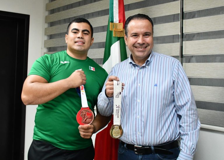 Acompañado por su mamá Guadalupe Gloria Espinoza, el joven también estudiante de la licenciatura de Derecho en la Universidad de Sonora agradeció el apoyo que el Gobierno Municipal le ha brindado para cumplir su sueño de representar a México en los panamericanos donde obtuvo la medalla que mostró orgullosamente al Presidente Municipal.