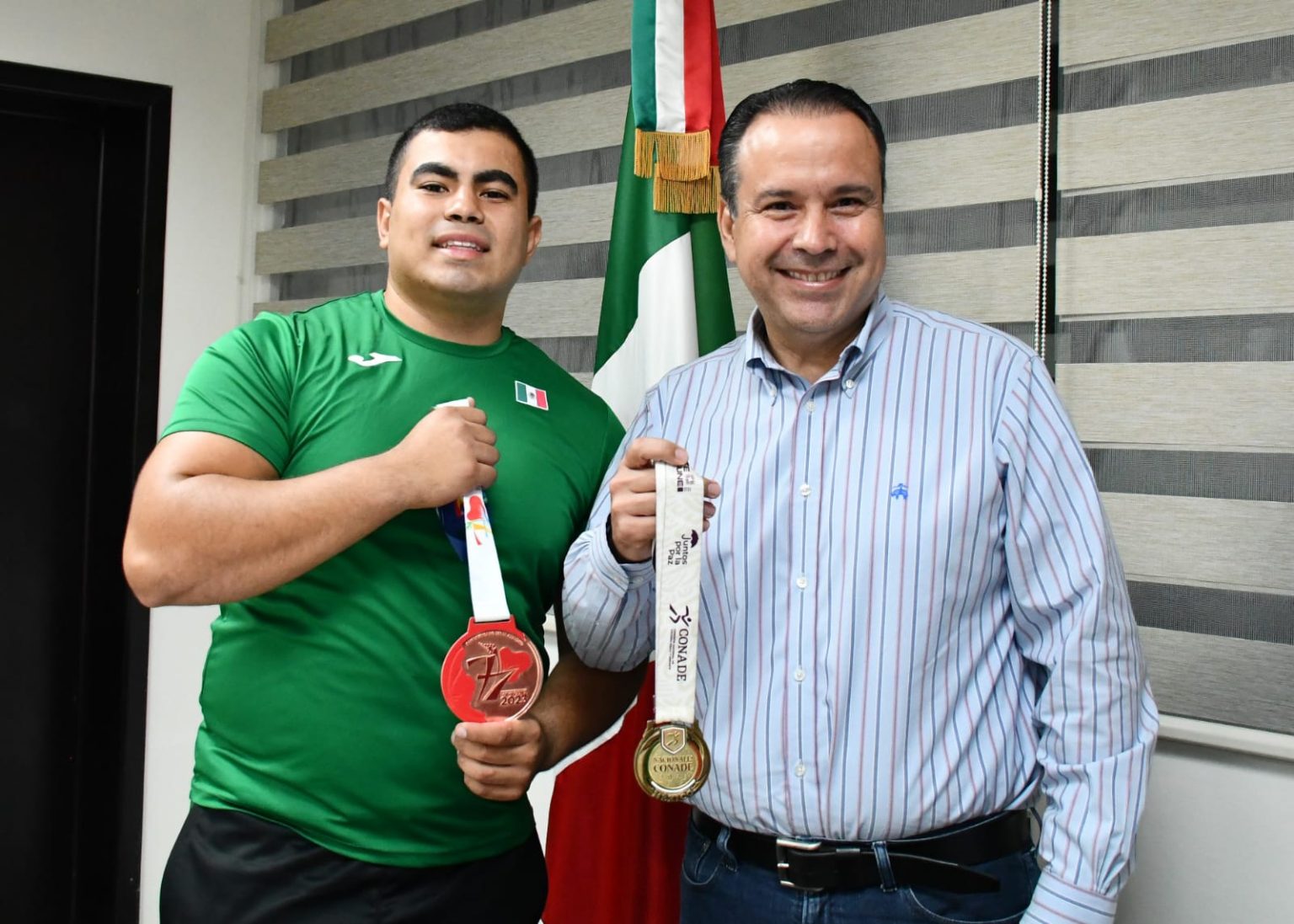 Junto al director del Instituto del Deporte de Hermosillo (IDH), Armando Labrada García, Toño Astiazarán felicitó al atleta quien, a sus 19 años, ha logrado el campeonato en los nacionales de CONADE cuatro veces consecutivas y el tercer lugar en Puerto Rico con un registro de 70.23 metros en la vigésima primera edición del torneo en Puerto Rico.