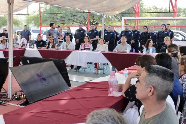 En compañía de Lorenia Valles Sampedro, directora general del Sistema DIF Sonora, Francisco Javier Zavala Segura, coordinador del Centro Estatal de Prevención del Delito y Participación Ciudadana y autoridades municipales expuso ante las y los vecinos, las líneas de acción que se implementarán en el sector.