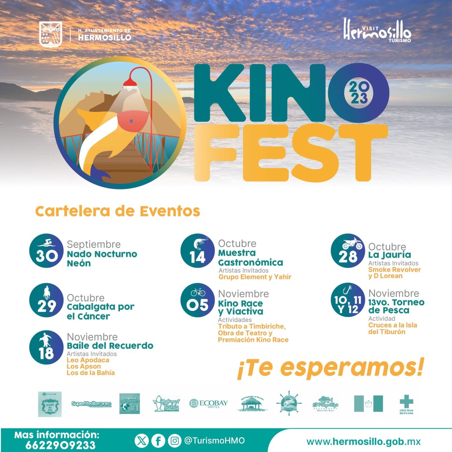 El domingo 5 de noviembre será la competencia de ciclismo Kino Race y una Víactiva edición Kino; del 10 al 12 de ese mes se celebrará la XIII edición del Torneo de Pesca de Curvina y el 18 de noviembre será el cierre estelar con un Baile del Recuerdo que estelarizará el grupo musical Los Apson.