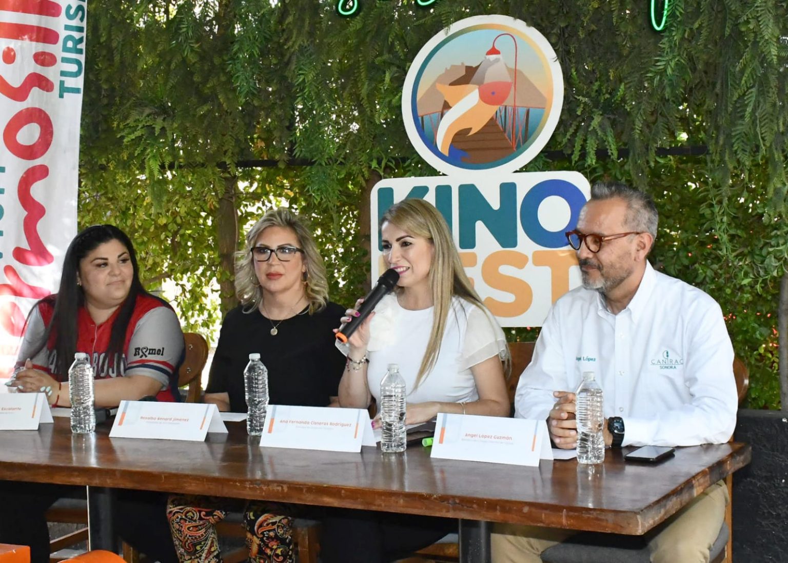 Acompañada por Celia López, integrante del Comité Organizador del Kino Fest; Rosalba Bernard Jiménez, representante de la Oficina de Convenciones y Visitantes (OCV) y ángel López, del consejo directivo de la Cámara Nacional de la Industria de Restaurantes y Alimentos Condimentados (CANIRAC), la funcionaria compartió detalles de las amenidades que tendrá este año la festividad.