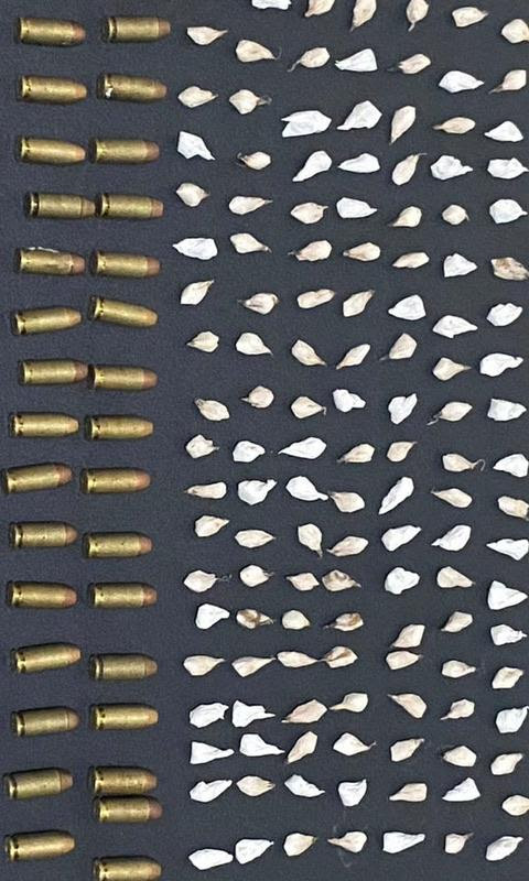 Las personas tripulaban un vehículo tipo pick up y al momento de la inspección se les aseguró 38 cartuchos para arma de fuego y 141 envoltorios con sustancia similar al narcótico.
