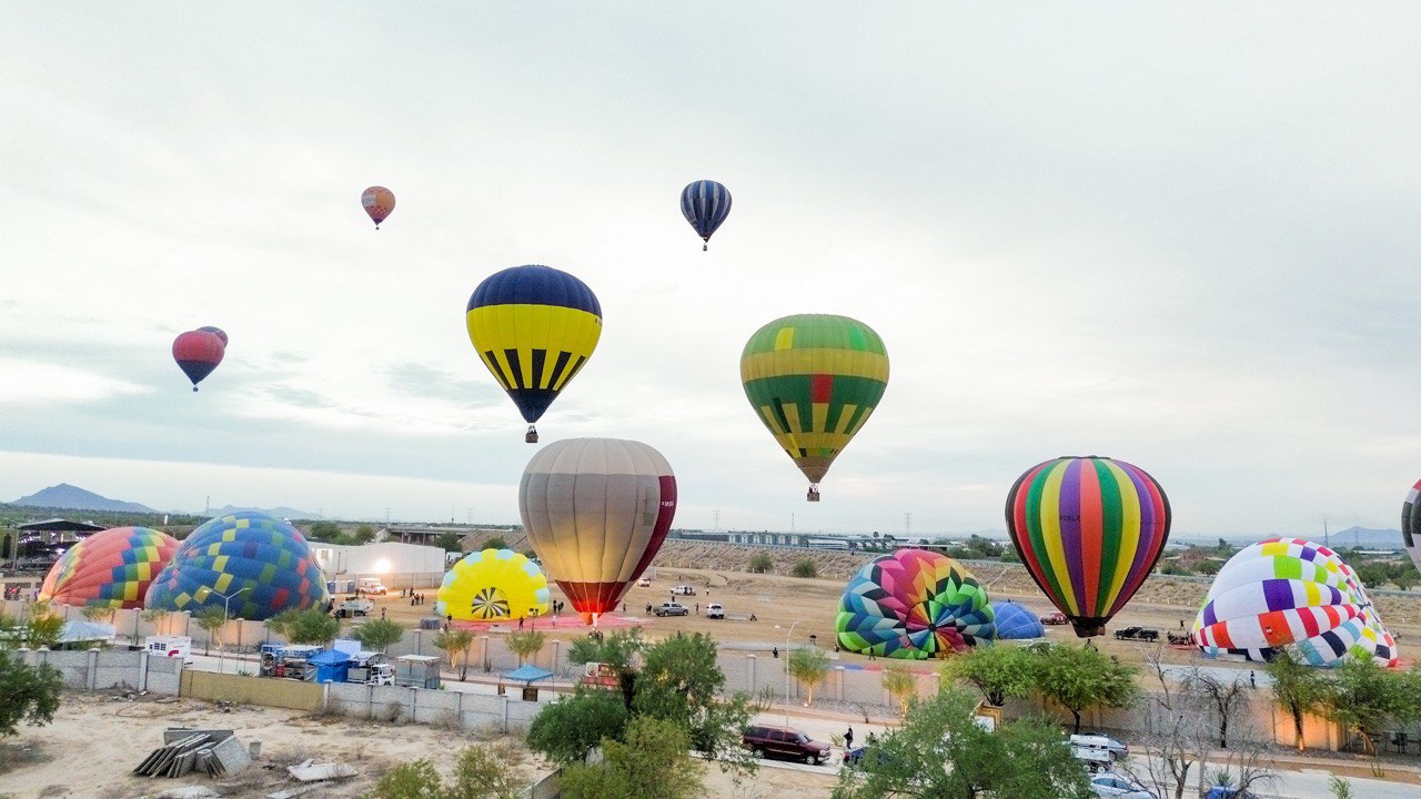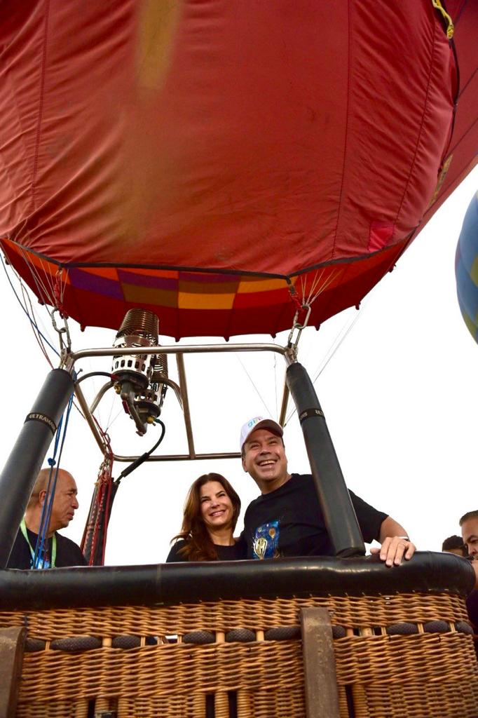El presidente Municipal Antonio Astiazarán y su esposa, Patricia Ruibal Zaragoza, se sumaron la mañana de este sábado a los pasajeros de vuelos del segundo Festival del Globo de Hermosillo.