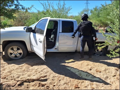 Altar, Sonora; 22 de octubre del 2023.- En los patrullajes de vigilancia aérea y por tierra, el operativo coordinado de los tres niveles de gobierno han asegurado en la zona de Altar y Caborca a dos personas, armas de fuego y vehículos robados.