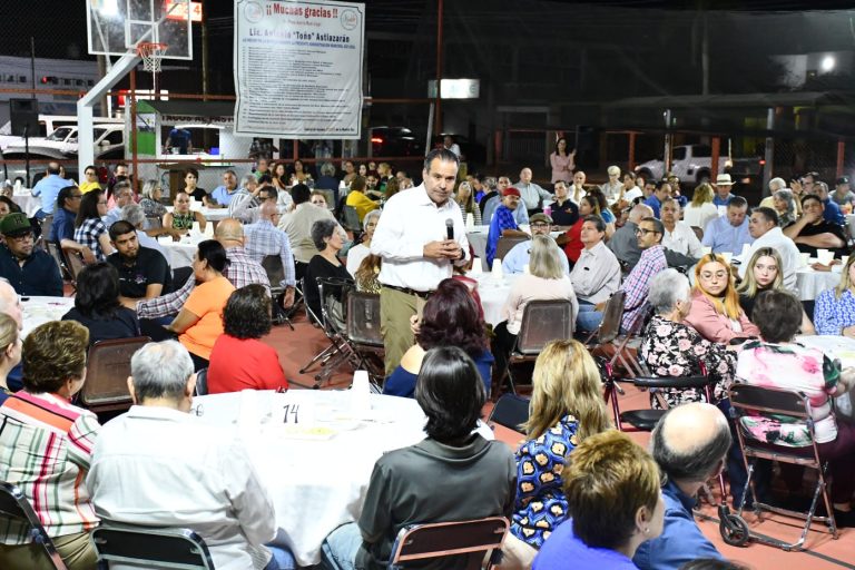 El Presidente Municipal Antonio Astiazarán atendió la invitación de vecinas y vecinos quienes organizaron un convivio en agradecimiento a los trabajos que el Ayuntamiento de Hermosillo ha realizado en materia de pavimentación y mejoras parques emblemáticos de la colonia con 70 años existencia.