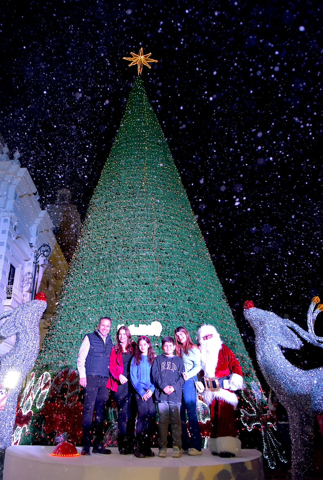 “Les deseamos la mejor de las navidades y un 2024 lleno de éxito y realizaciones personales”, expresó el Presidente Municipal Antonio Astiazarán a los hermosillenses al encender, junto a su esposa Patricia Ruibal e hija Maria Paula, el tradicional árbol navideño de 15 metros frente a Palacio Municipal.