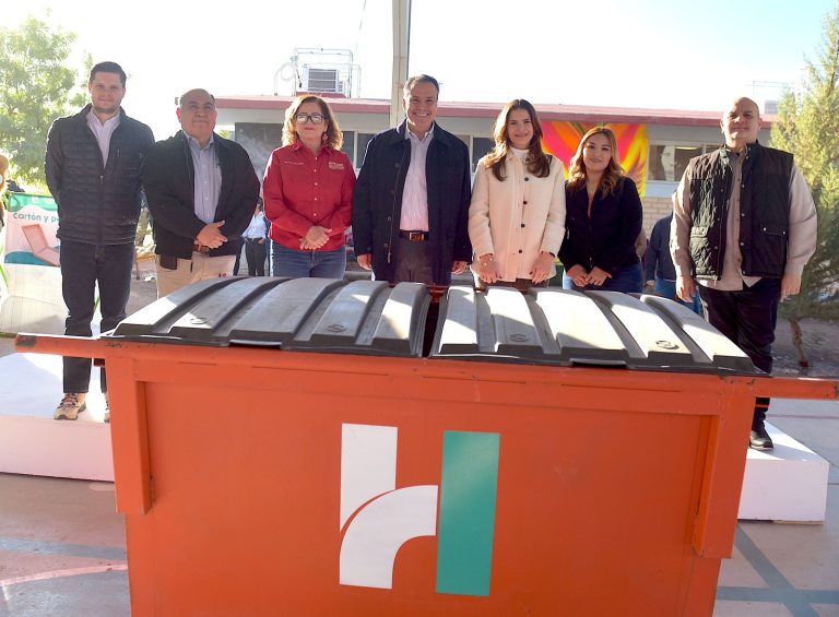 Lo acompañaron en esta ocasión Manuel Emilio Hoyos Díaz, Comisario General de la Corporación, junto con mandos medios de la corporación y el director de Servicios Públicos Municipales en la entrega de un contenedor de 1.3 metros cúbicos de capacidad donde podrán disponer de los desperdicios de la escuela.
